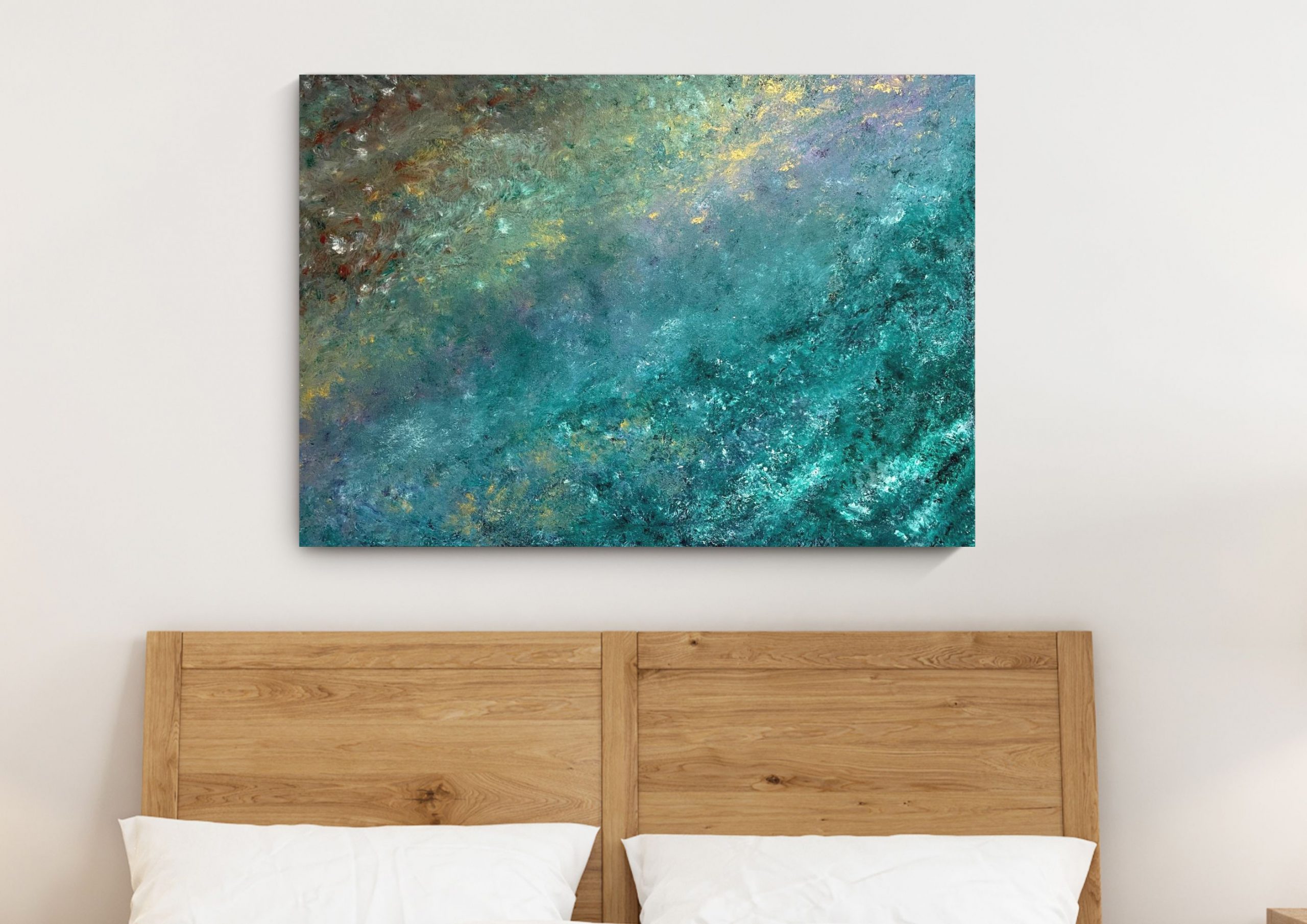 Obraz powstał na płótnie o wymiarach 100×70 cm. Jest oferowany bez ramy, ale posiada zamalowane boki, dzięki czemu jest gotowy do powieszenia.