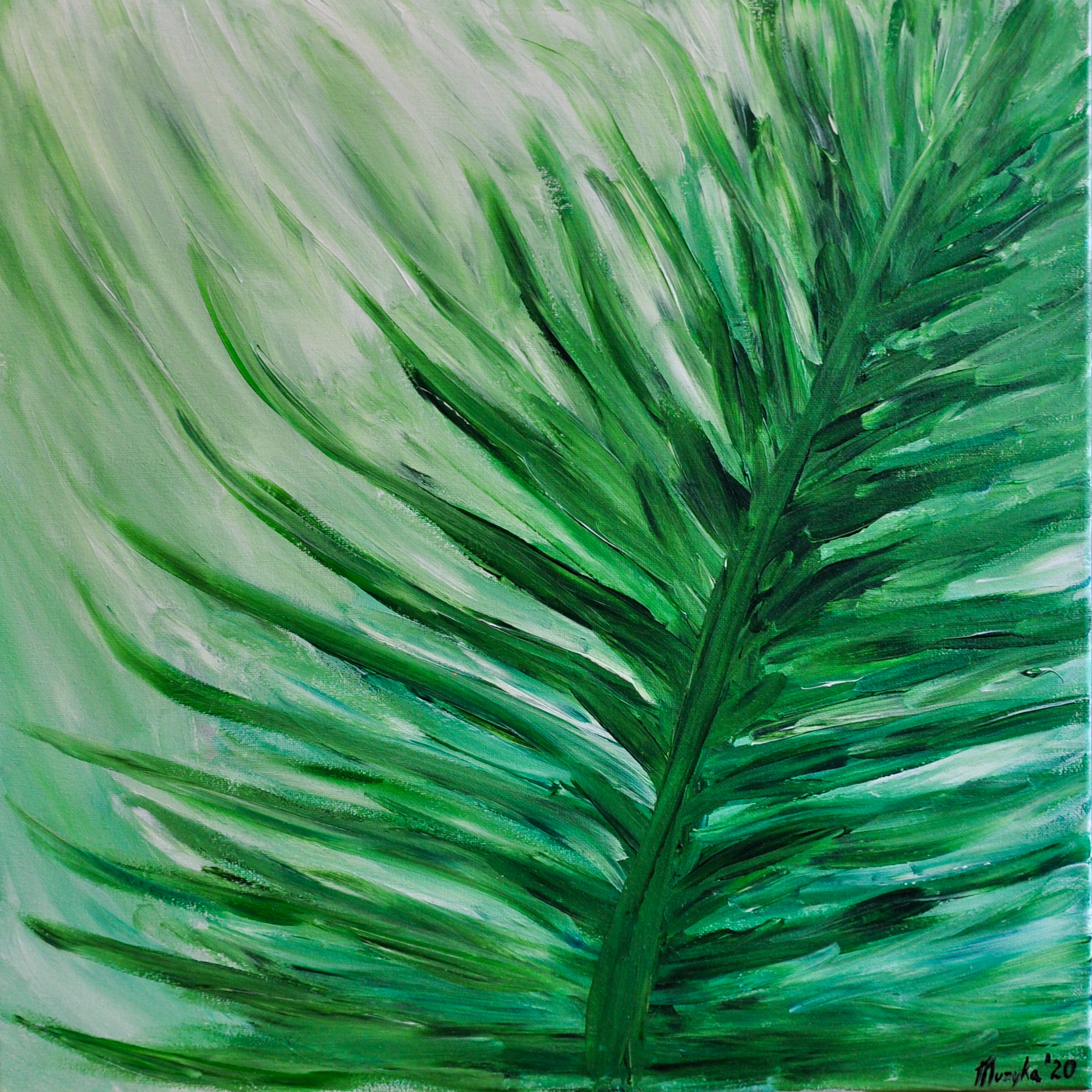 Obraz powstał na płótnie o wymiarach 50×50 cm. Jest oferowany bez ramy, ale posiada zamalowane boki, dzięki czemu jest gotowy do powieszenia.