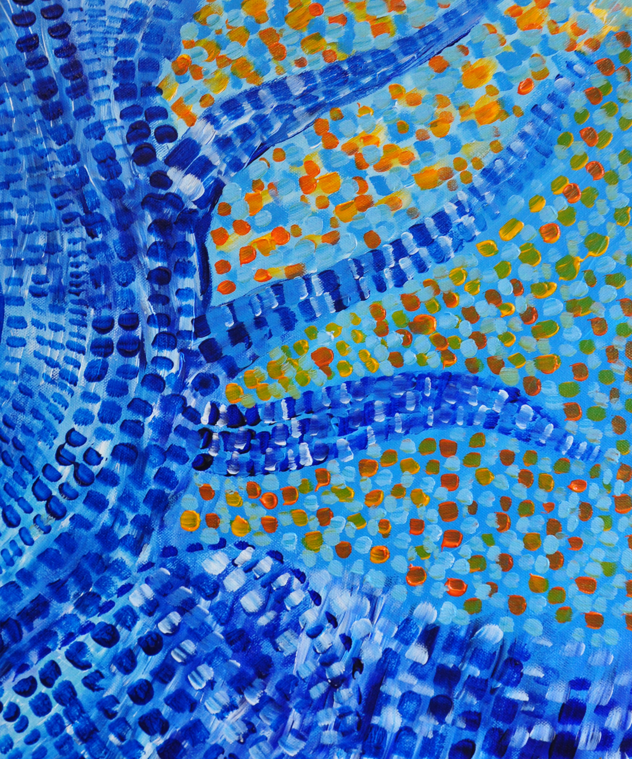 Obraz namalowany farbami akrylowymi oraz zabezpieczony werniksem. Każda praca jest unikatowa – wykonana ręcznie.