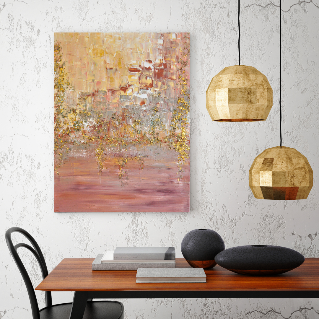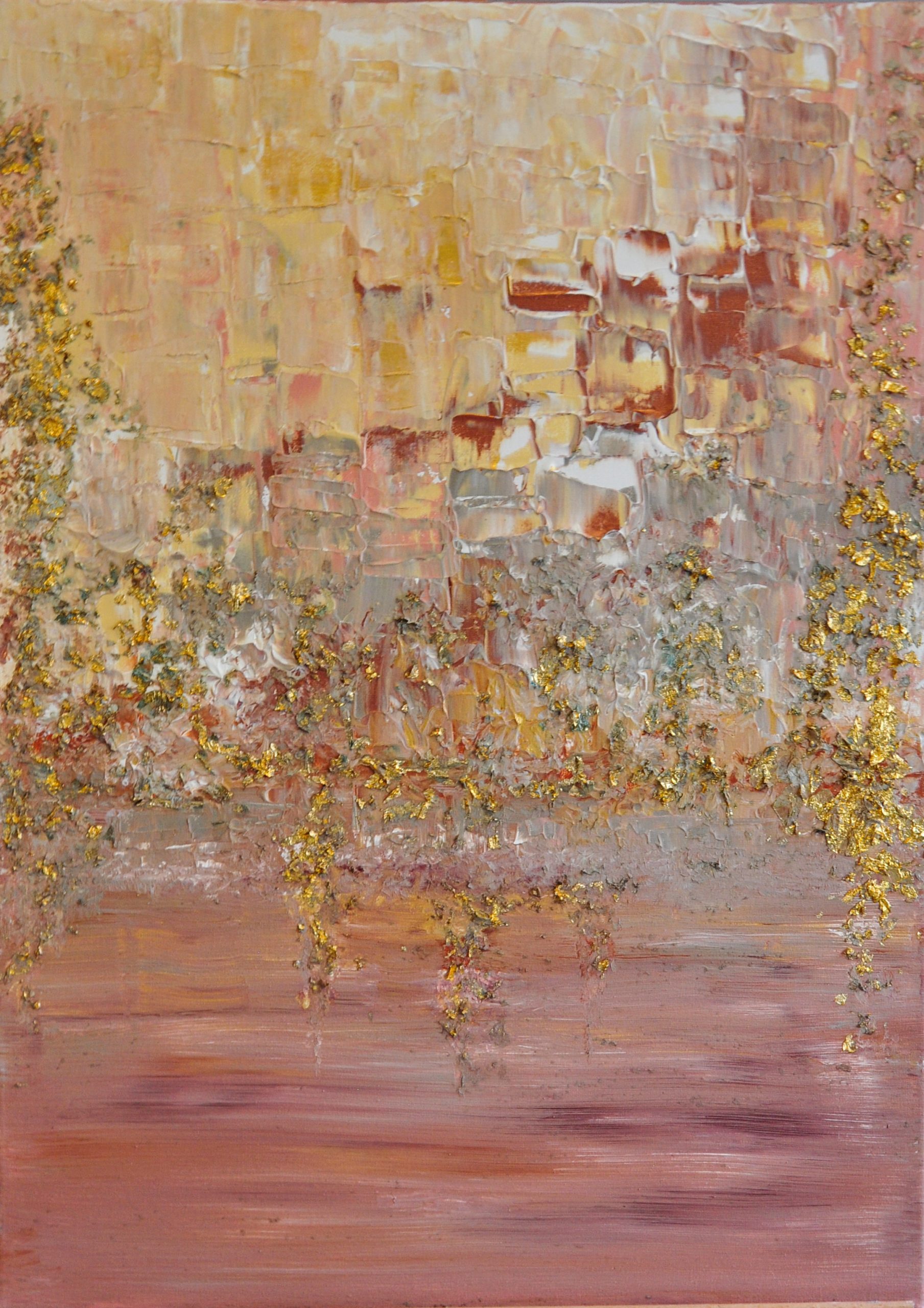 Obraz namalowany farbami akrylowymi z wykorzystaniem szlagmetalu oraz zabezpieczony werniksem. Każda praca jest unikatowa – wykonana ręcznie.